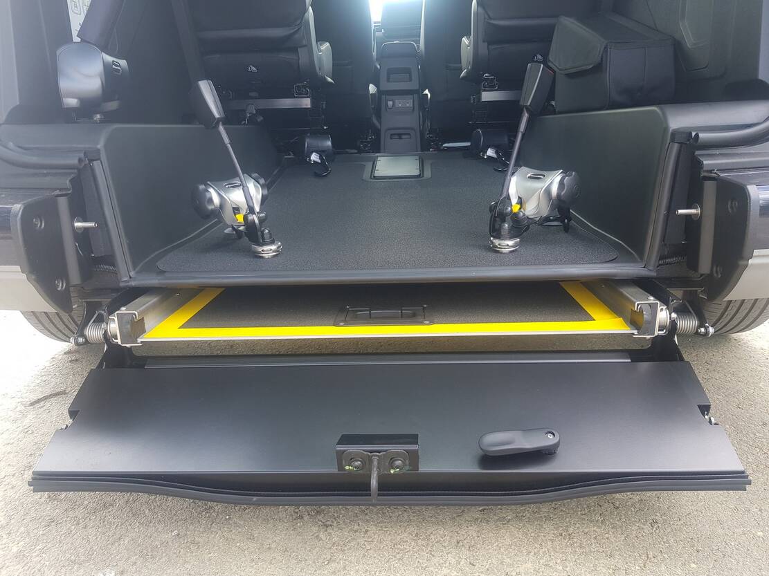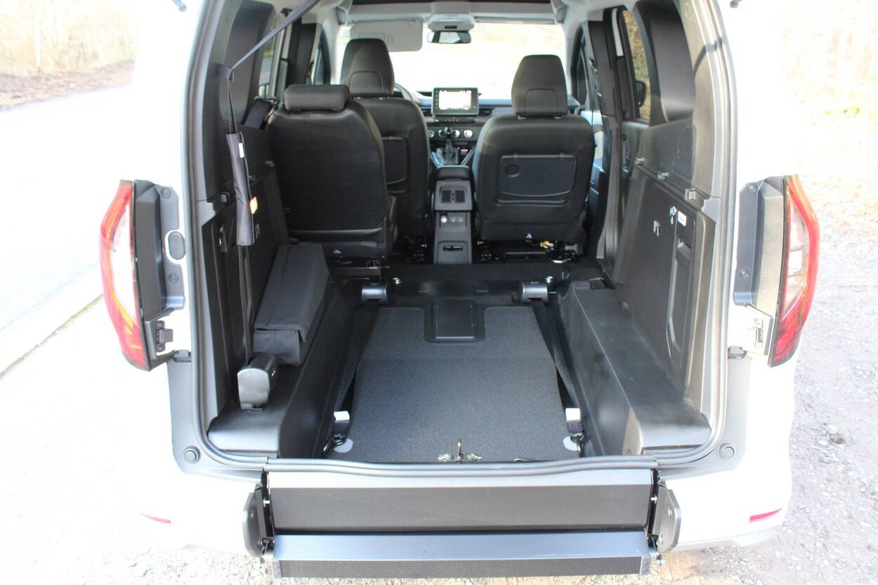 Ce véhicule est aménagé handicap pour une personne en fauteuil roulant avec une rampe d'accès manuelle SlidAccess (repliable directement sous le coffre), la possibilité de mettre le fauteuil roulant en position avancée (à côté du passager rang 2), un décaissement arrière avec accroissement de la hauteur entrée de porte et plancher antidérapant, 1 siège individuel repliable et amovible, un système d'arrimage 4 sangles avec ceinture de sécurité 3 points et enrouleurs avant à blocage électrique, une sortie de secours PMR pour le hayon de coffre, un éclairage sur le hayon de coffre pour faciliter la visibilité lors du transfert du fauteuil roulant, une sacoche de rangement pour enrouleurs.