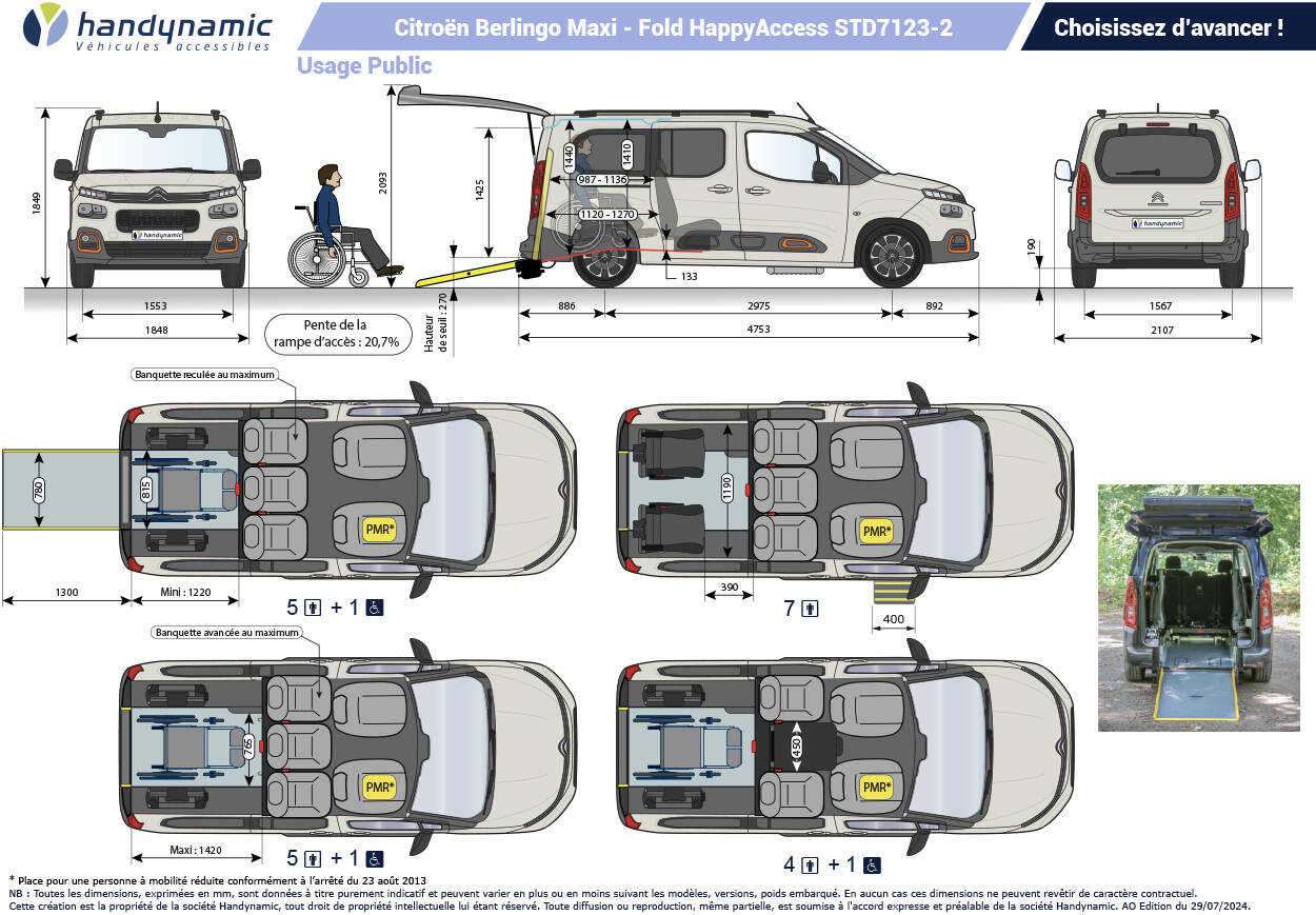 Découvrez les dimensions utiles du Citroën Berlingo TPMR Maxi Fold SimplyAccessdans le schéma d'implantation ci-dessous :